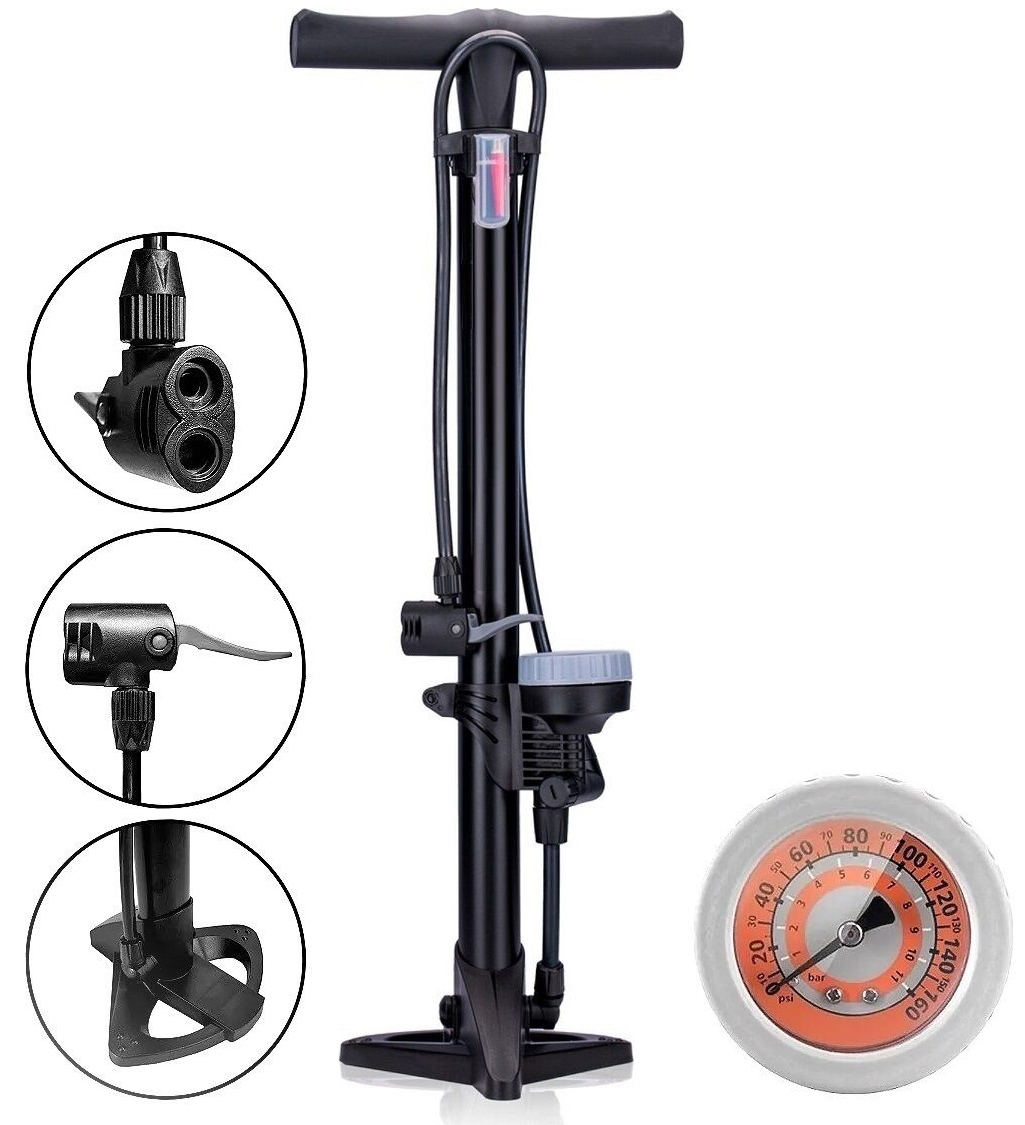 Насос RAPIDA напольный, алюминиевый, 610 мм, с манометром, универсальный, двойная головка A/V, F/V, Мax 120psi (9 бар), комплект переходников, GP-6138B (УТ00025658)